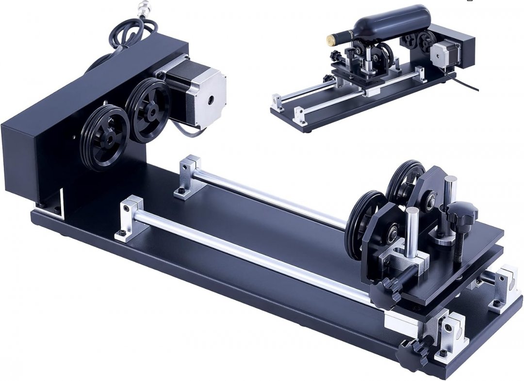 OMTech 4-Wheel Rotary Cutter and Engraver Attachment with Nema 23 2-Phase Stepper Motor
