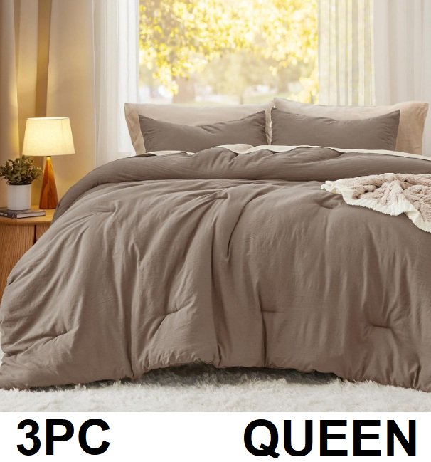 3pc bedsure winter collection fluffy comforter with pillow cases - queen - BROWN