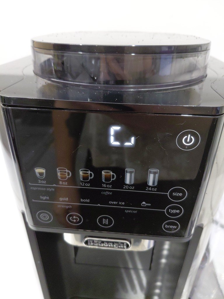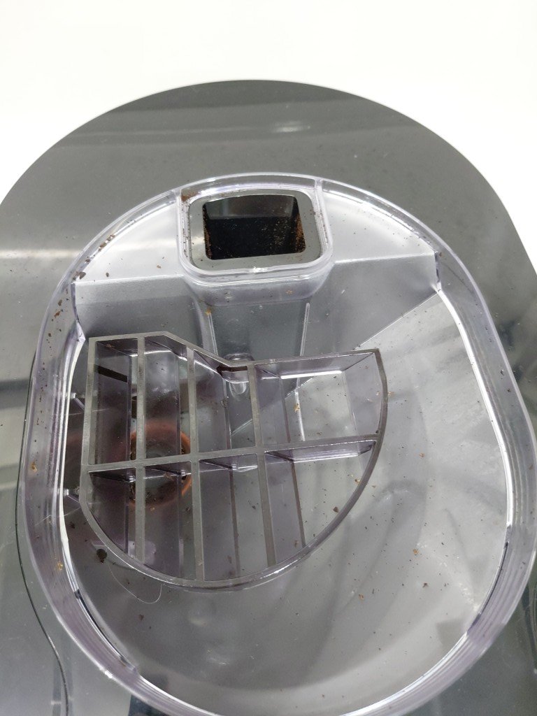 Missing carafe, can be replaced. Item has coffee grinds from previous use (see photos) tested for power only