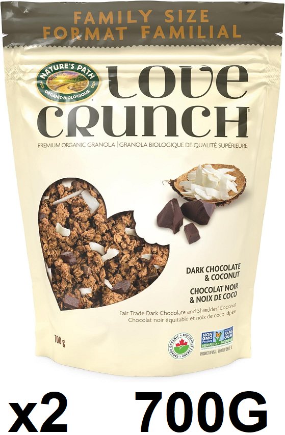 2 Love Crunch Organic Dark Chocolate and Coconut Granola - 700G/BAG