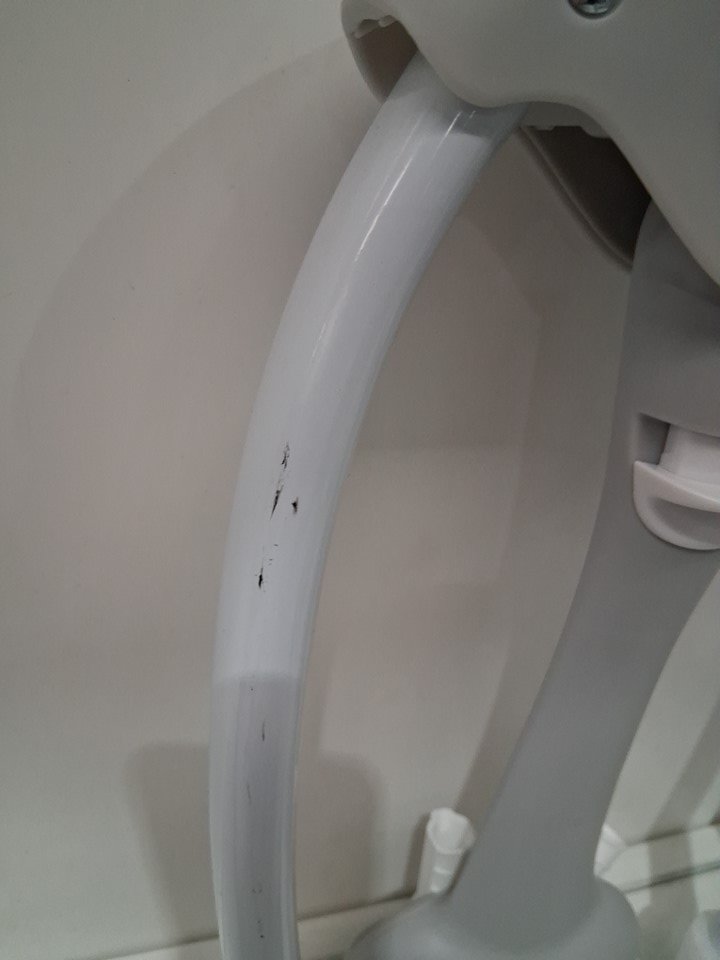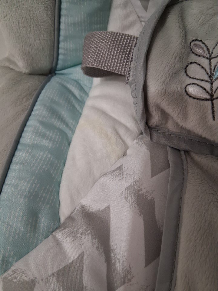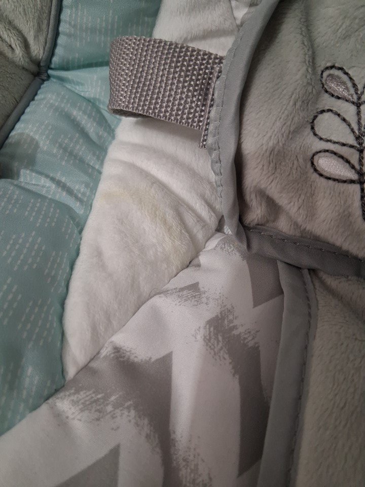 item has some staining on the chair fabric and some scuffs on poles ( see photos)