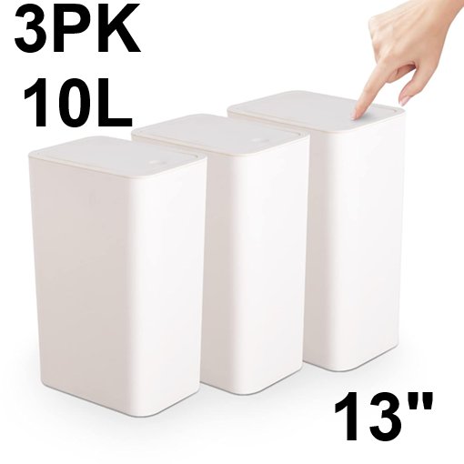 3PK TrashAid Slim Garbage Can with Pop-Up Lid - 10L - 13" - white - (MODEL: AMZUSIJS01WHT040012-3)