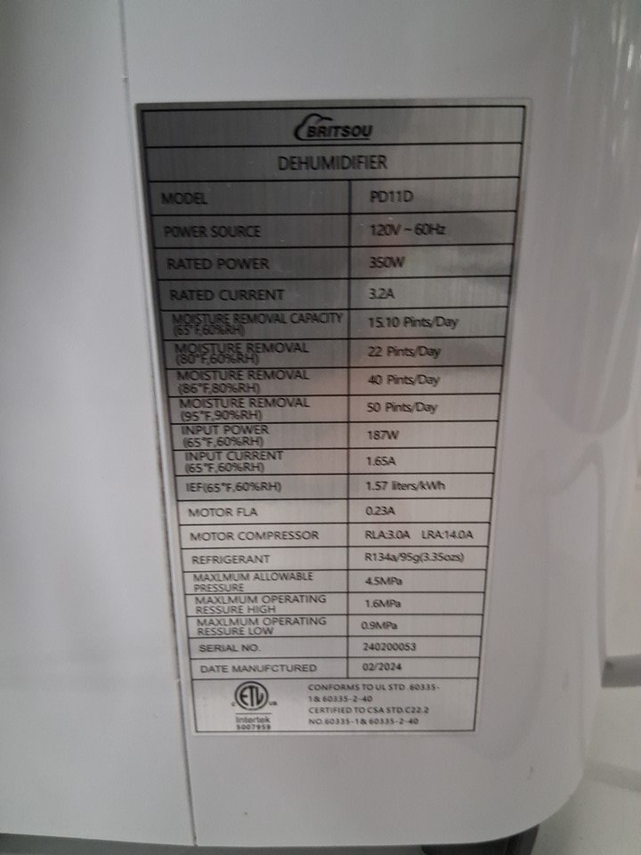 BRITSOU HOME DIGITAL DEHUMIDIFIER WITH DRAIN HOSE - 3500 SQ. FT COVERAGE - WHITE (MODEL: PD11D)