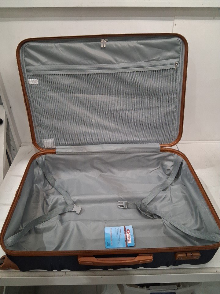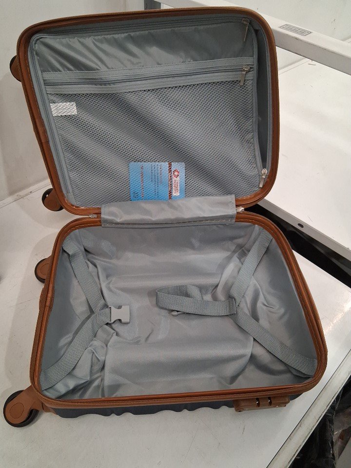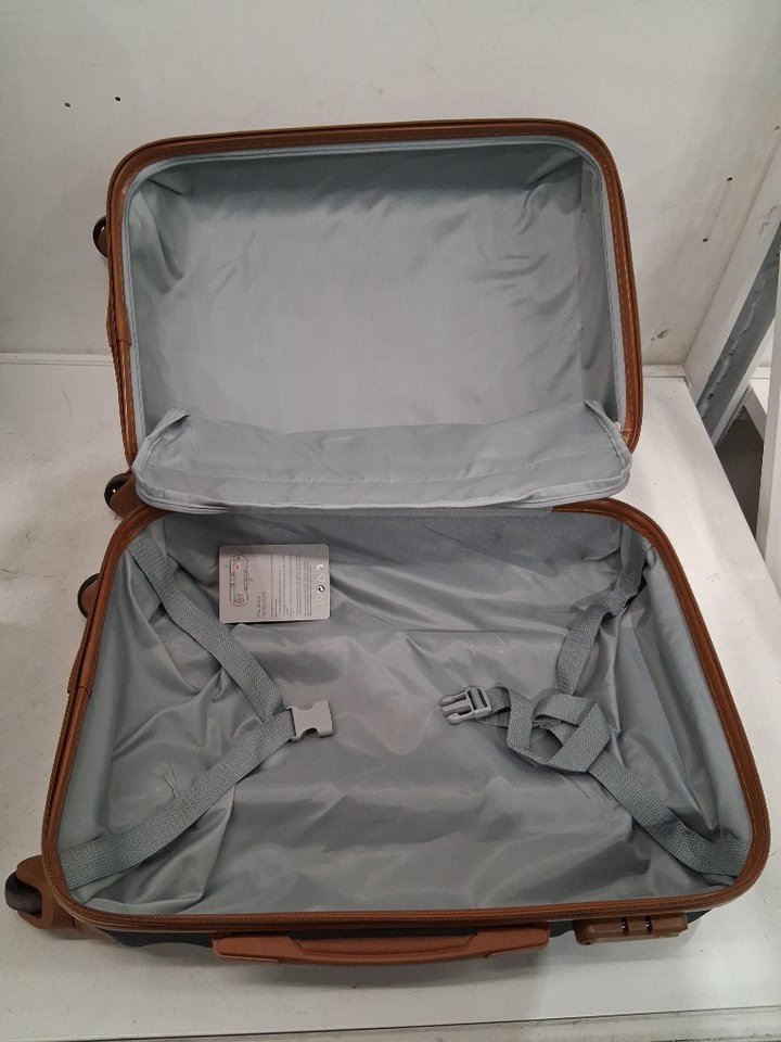 6PC LONG VACATION Luggage Set Hardshell with TSA Lock Spinner Wheels Duffel bag and toiletry bag - VARIOUS SIZES - BLUE/BROWN (MODEL: LV400001)