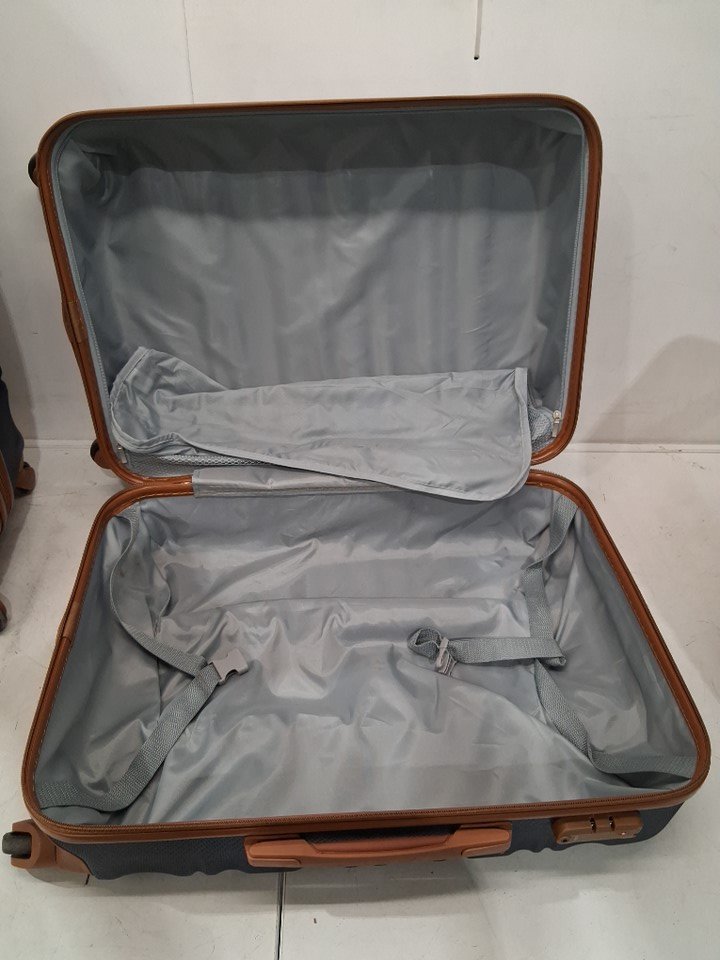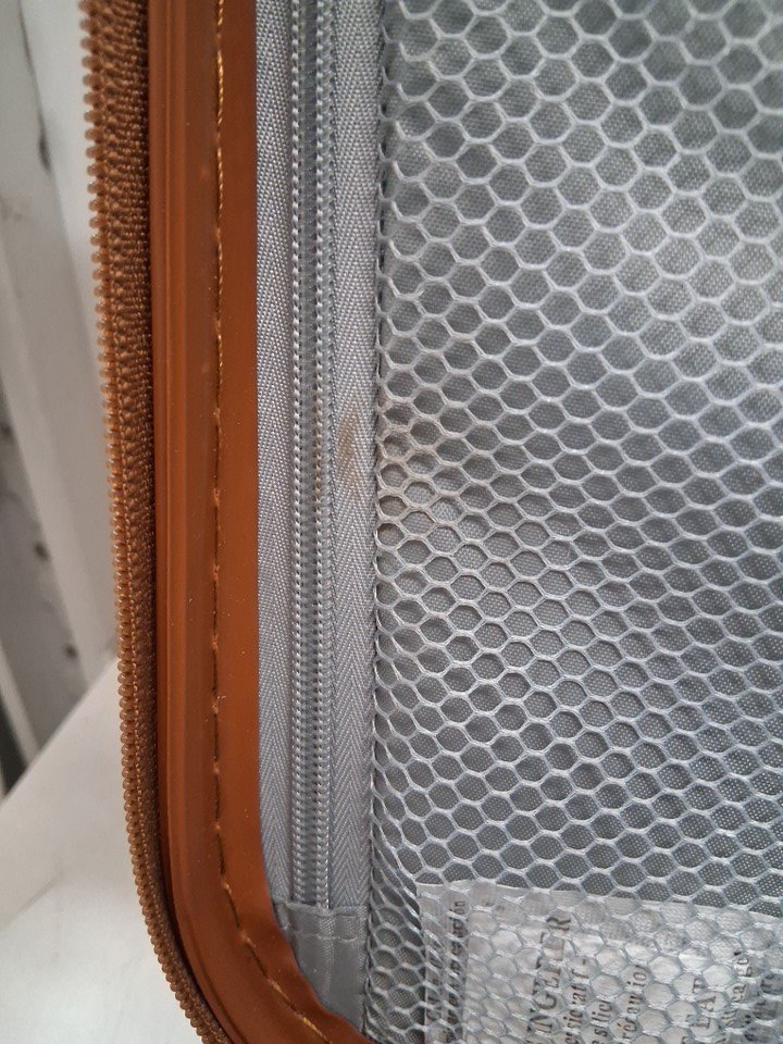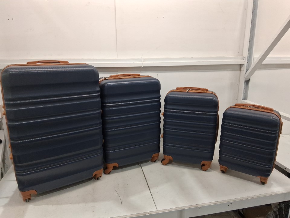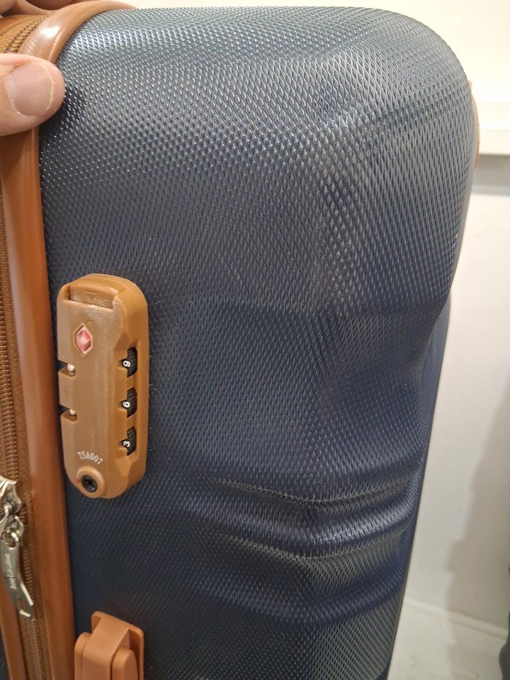 There is a good amount of dust on the exterior of all the hardshell cases and their wheels, as well as some light scuffs and stains, and one noticeable dent in one corner of the largest case, implying some previous use or handling - see photos. Outside of the dent and general cleanliness, all pieces appear to be in good condition without any major damage or visible issues.