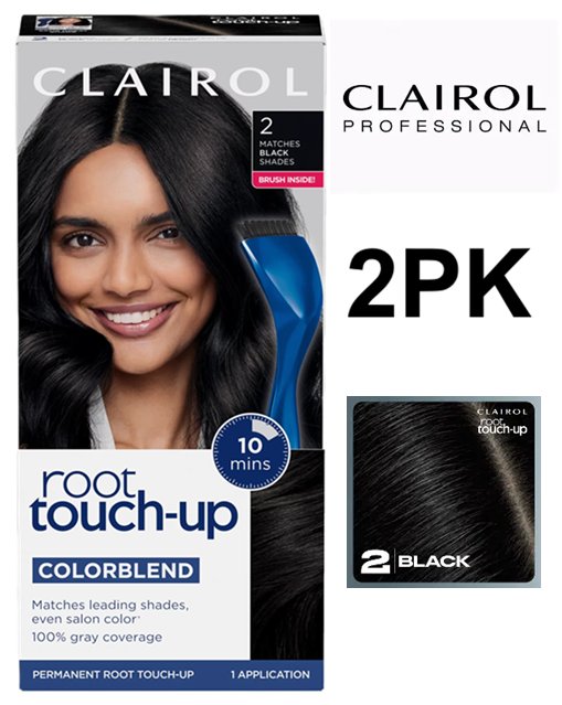2PK clairol 10 minute root touch up colorblend permanent hair dye - (2 BLACK )