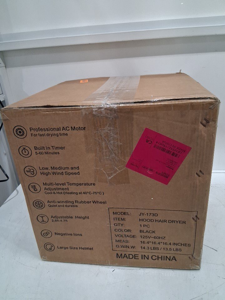 Colliford Professional AC Motor Stand Tourmaline Bonnet Hood Hair Dryer - 2.8FT - 4.7FT - 40-75 ℃ - Black - (Model: JY-173D)