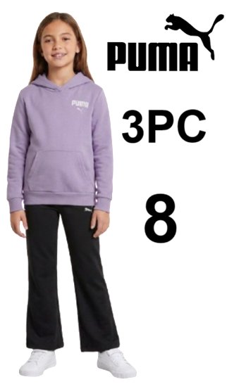 3PC GIRL'S PUMA HOODIE, LEGGINGS AND SHIRT SET - 8 - PURPLE/GREY (STYLE: 8888001)