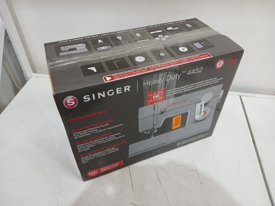 SINGER heavy duty sewing machine - 15.5" x 6" x 12" - 84W - white/grey - (model:HD4452)