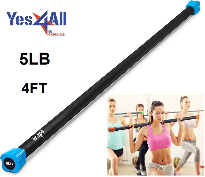 YES4ALL WEIGHTED WORKOUT BAR - 5LBS - 4FT - BLACK/blue - (MODEL: ‎Z2YS-SA)