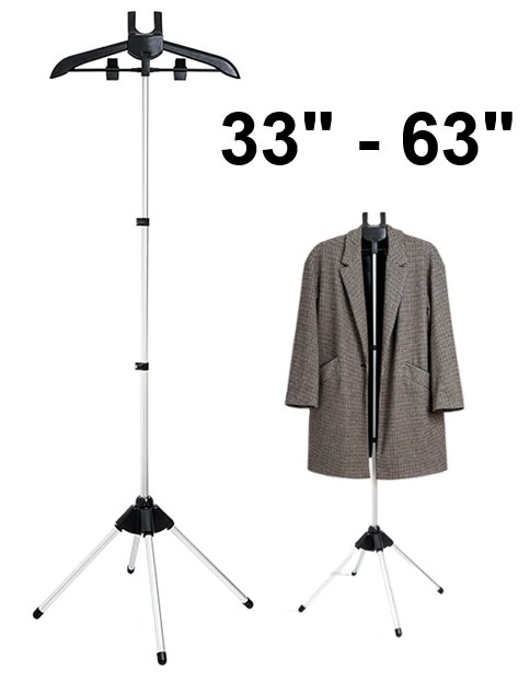 FOLDABLE Garment Steamer clothes rack Hanger WITH ADJUSTABLE HEIGHT - 33" - 63" - black/silver