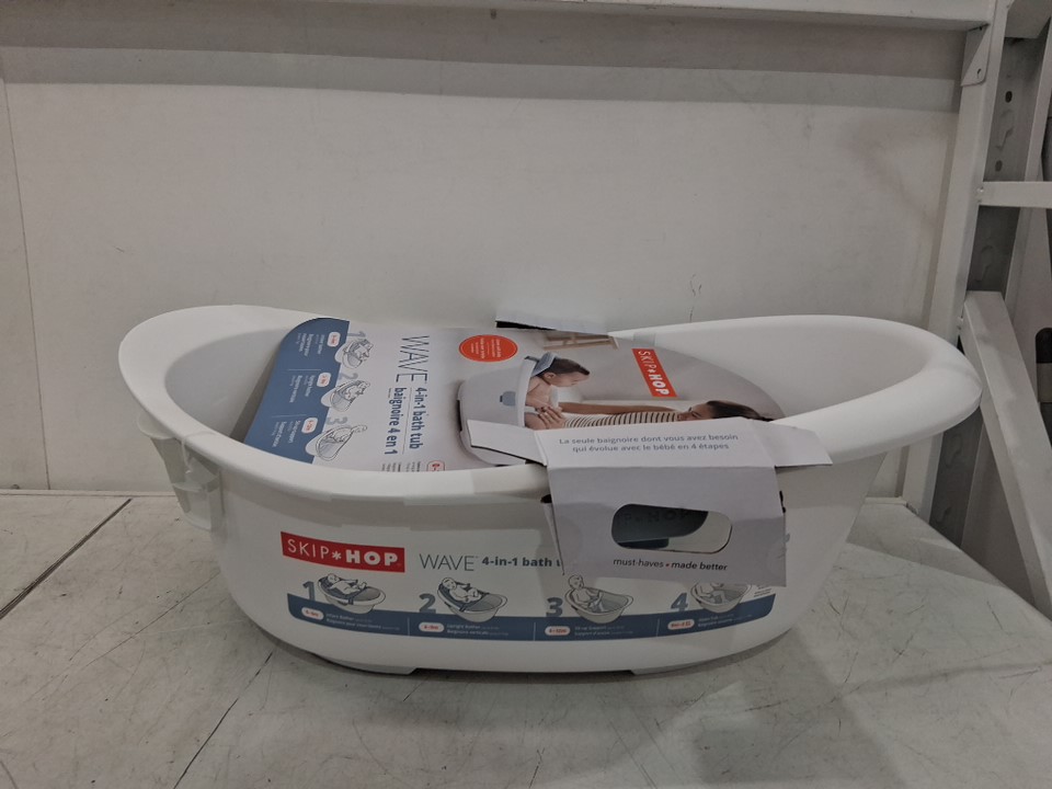 skip hop Wave 4-in-1 Baby Bath Tub - newborn to 2 years - 15lb to 25lb - white/blue (MODEL: 9L511910)
