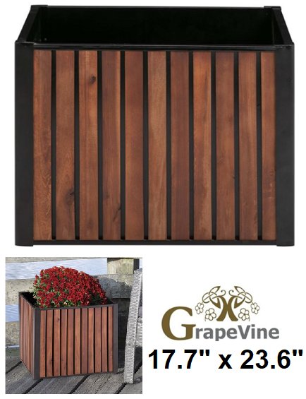 grapevine earth friendly urban garden wood and metal planter - 17.7" x 23.6" - brown/black - (model:PL10314)