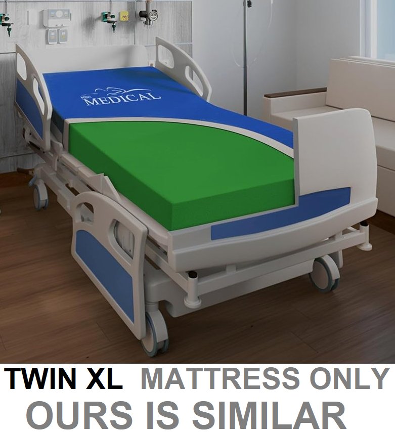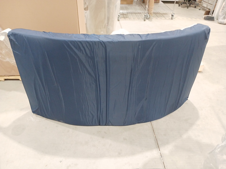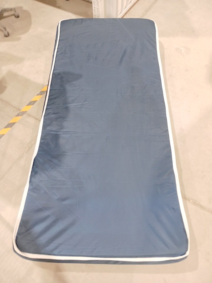 Our item is white and blue. Mattress only. Our item is a little dusty from being in the warehouse