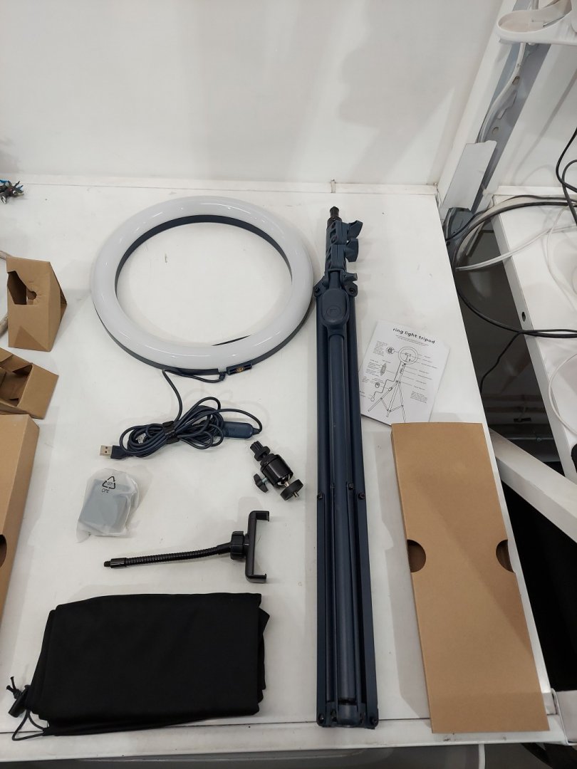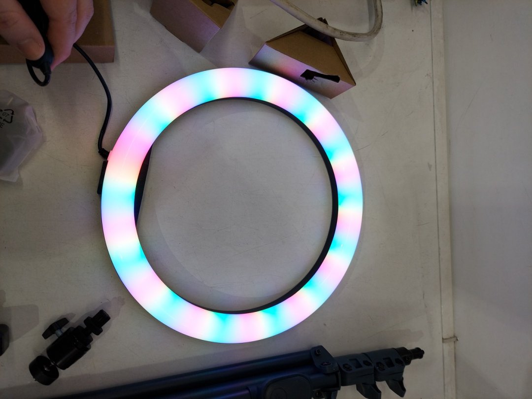 heyday 12" rechargeable bluetooth rgb ring light for cameras/mobile phones with carrier bag & adjustable tripod - 43" to 84" - dark blue