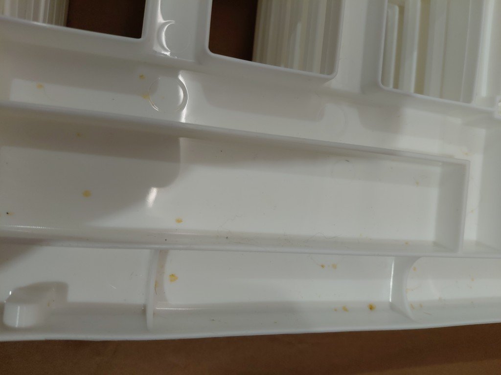 item has some yellow droplets on the back of one panel from previous use (see photos)