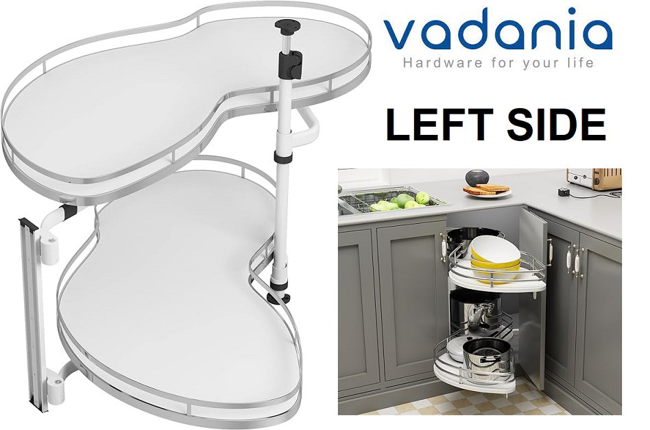 VADANIA 2-TIER SWING CABINET PULL-OUT CORNER STORAGE ORGANIZER 32" - left sided - 30lbs capacity per shelf - white