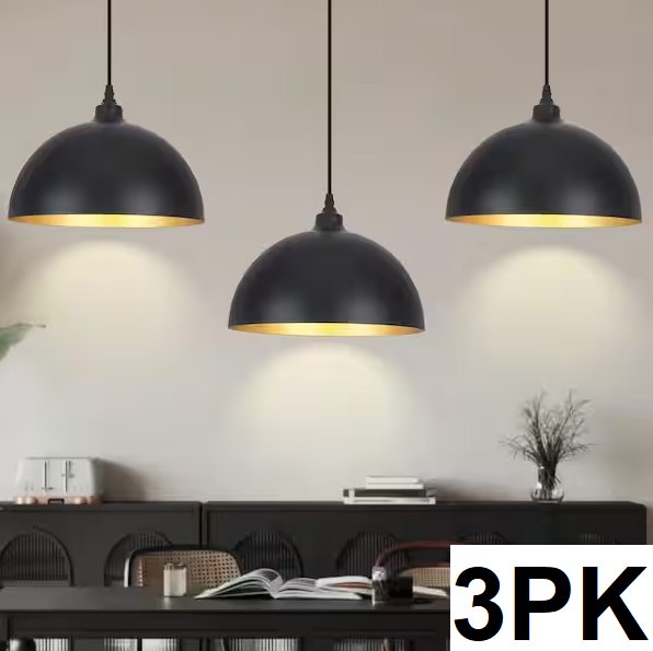 3pk lwytjo Modern Industrial Dome Shaded Pendant Light with Metal Shade - 60W - black (model: zjd00155-300-b-3)