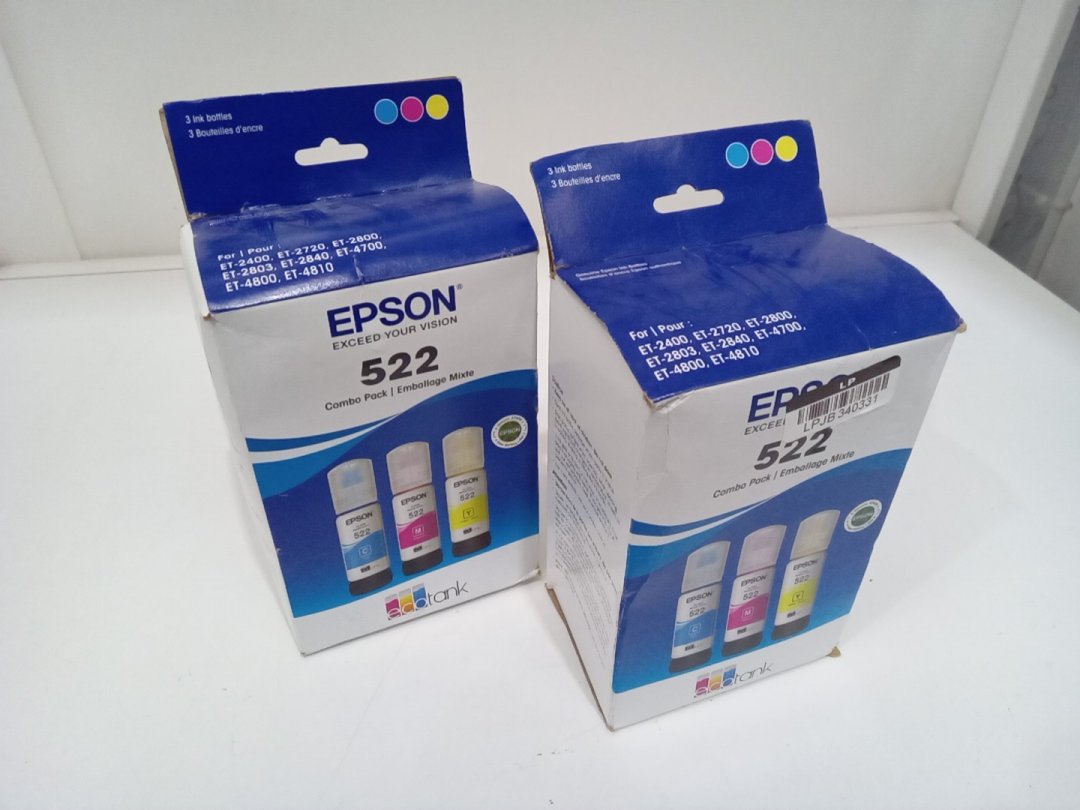2 (3PC) Epson 522 Combo Pack Ink Refill Bottles for Select EcoTank Printers - 65mL Each - Cyan, Magenta, Yellow (Model: T522520-S/CP)