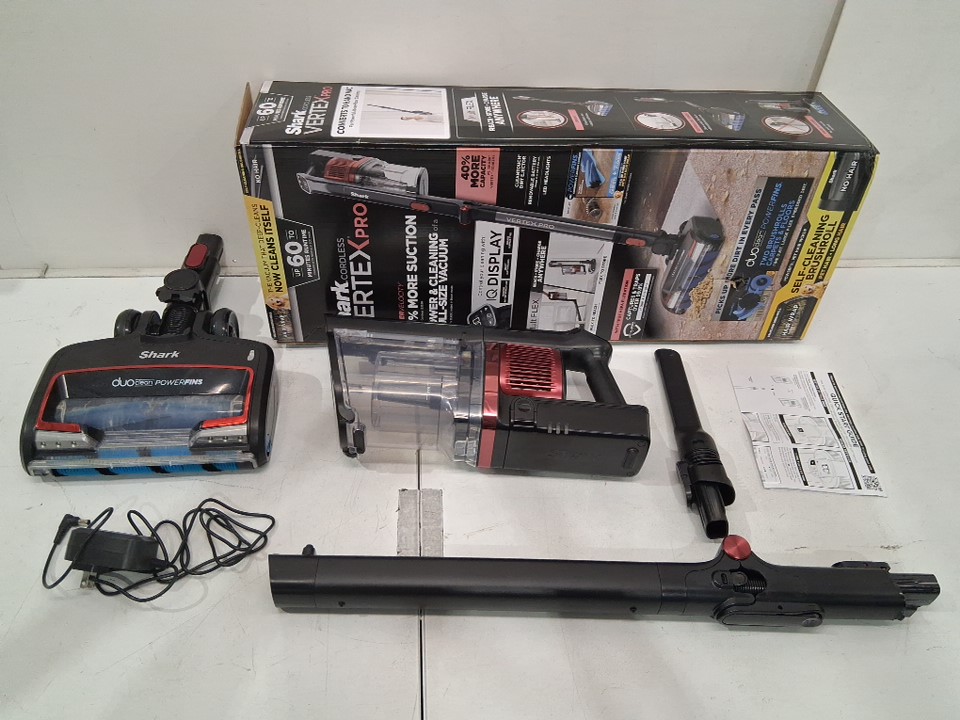 shark vertex pro cordless stick vacuum with iq display, duoclean powerfins and multiflex - black/red (model: IZ662H)