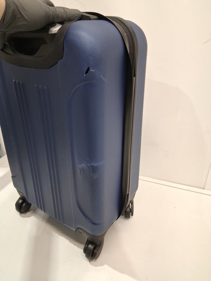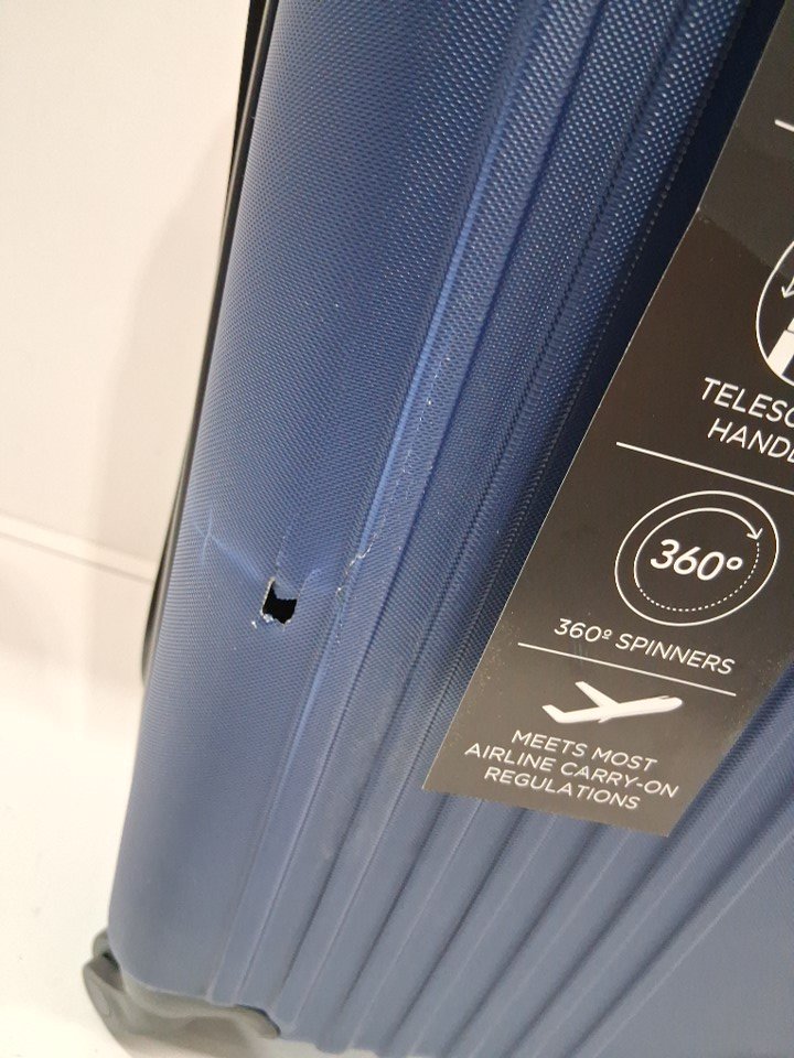 Cracks in the shell on the front and back side and some warping on the border of the zipper