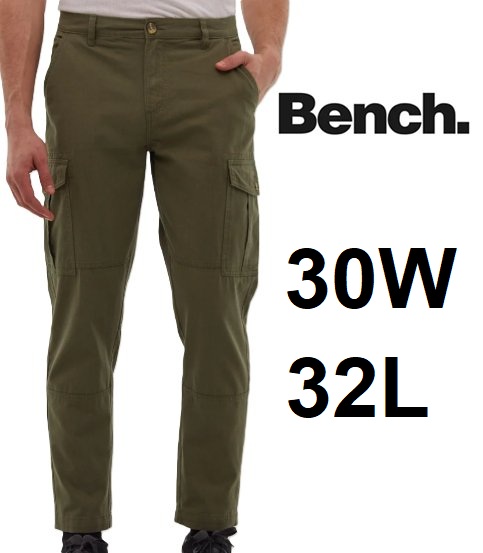 Mens Bench Denim Cargo Pants - 30W x 32L - Green Khaki (Style: 1804060)