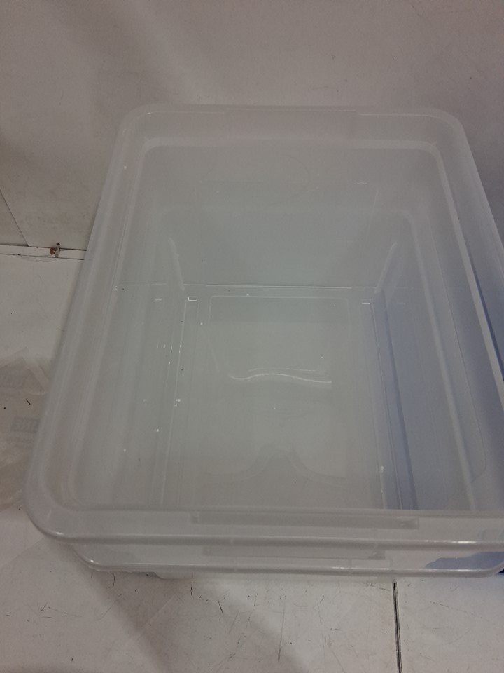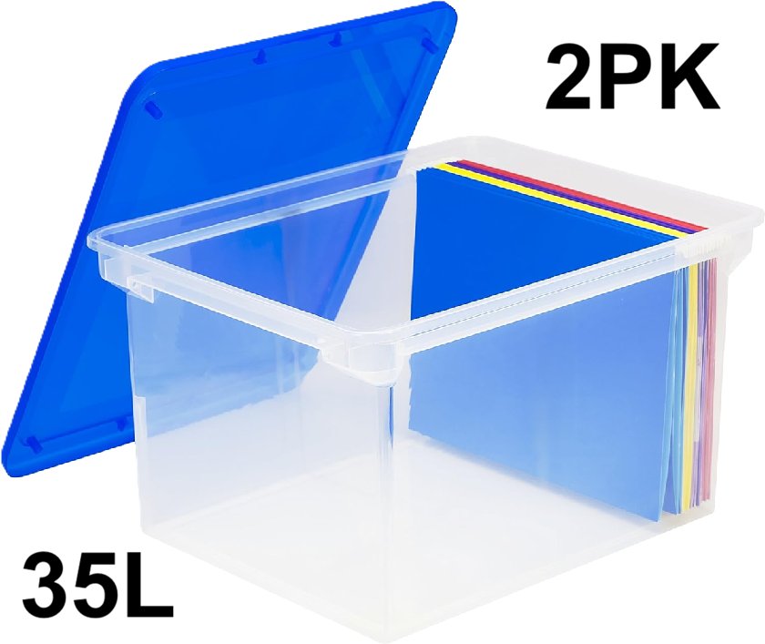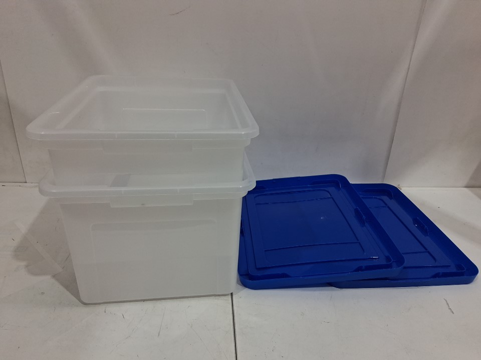 2pk storex plastic File Tote Storage Box with Snap On Lid - 35l - clear/blue (model:61508U01C)