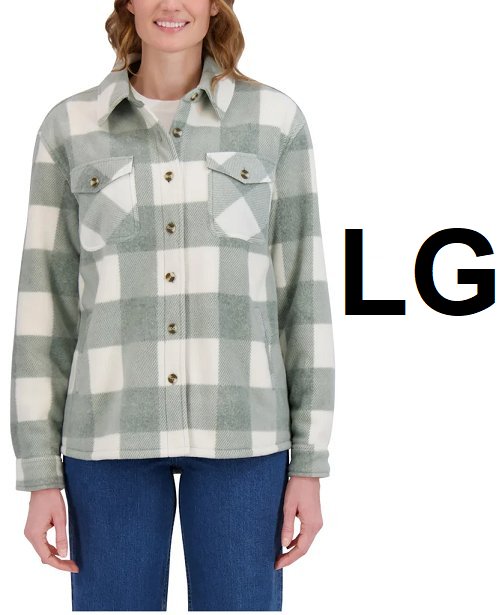 Women's Sage Collective Plush Shirt Jacket - large - green / white plaid (style: 1894385)
