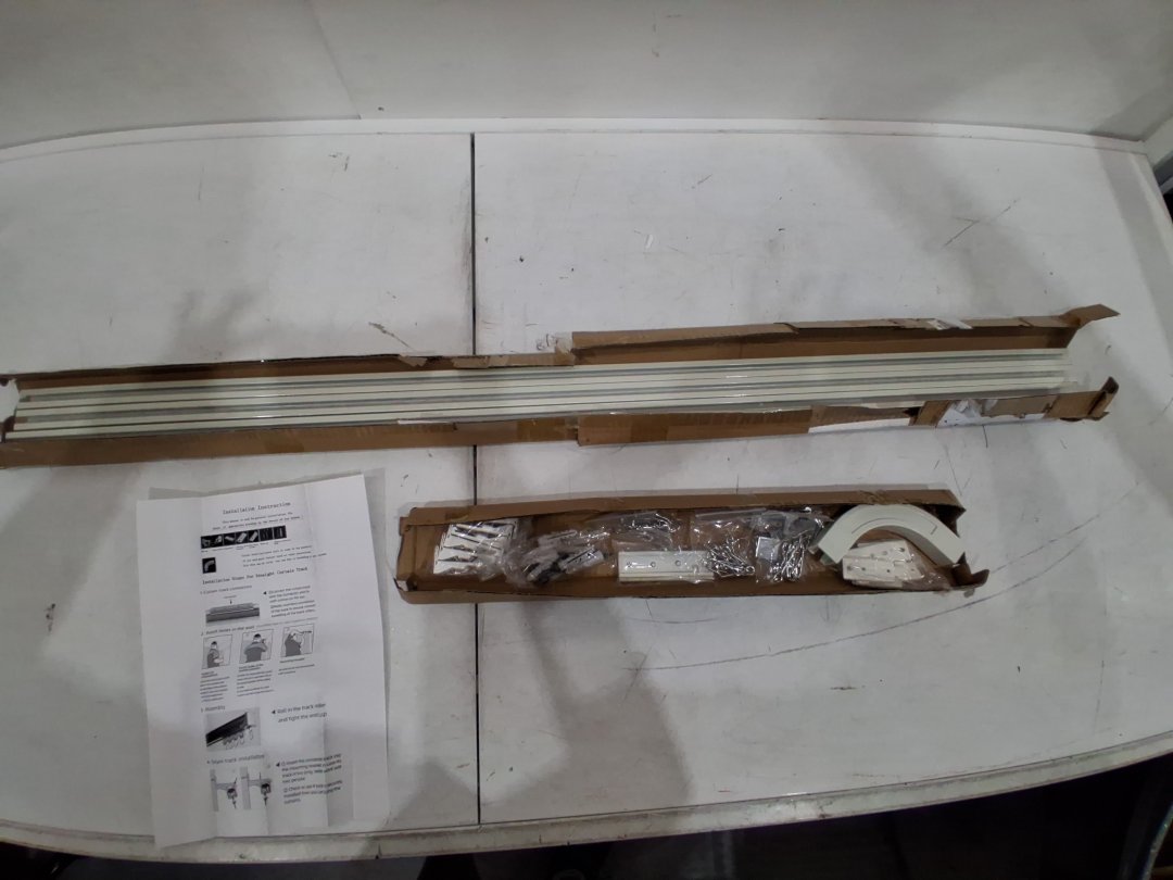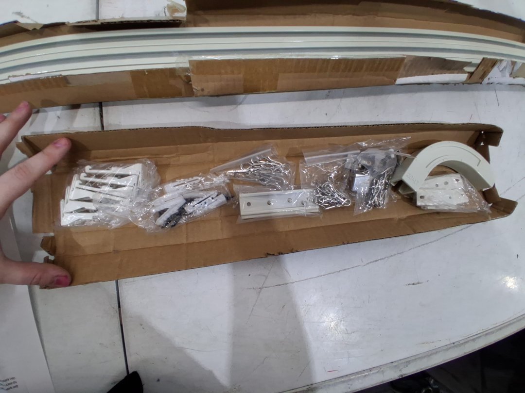 PLEASE NOTE: Item appears to only have one corner piece. Does not impede function. Additional pieces can be found through online retailers to customize shape of track: https://www.amazon.ca/Jos-Haz-Degree-Bracket-Curtain/dp/B08J4F7TN4?th=1