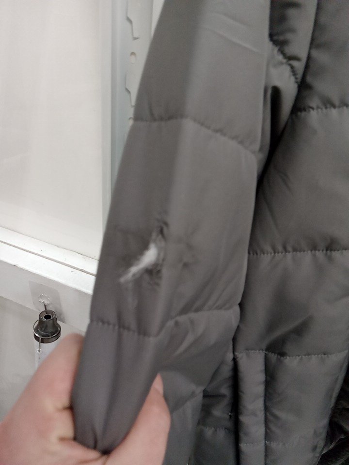 there is a small hole in the left arm of the coat