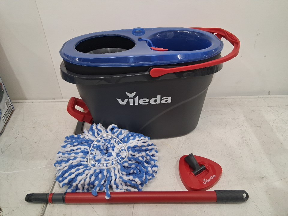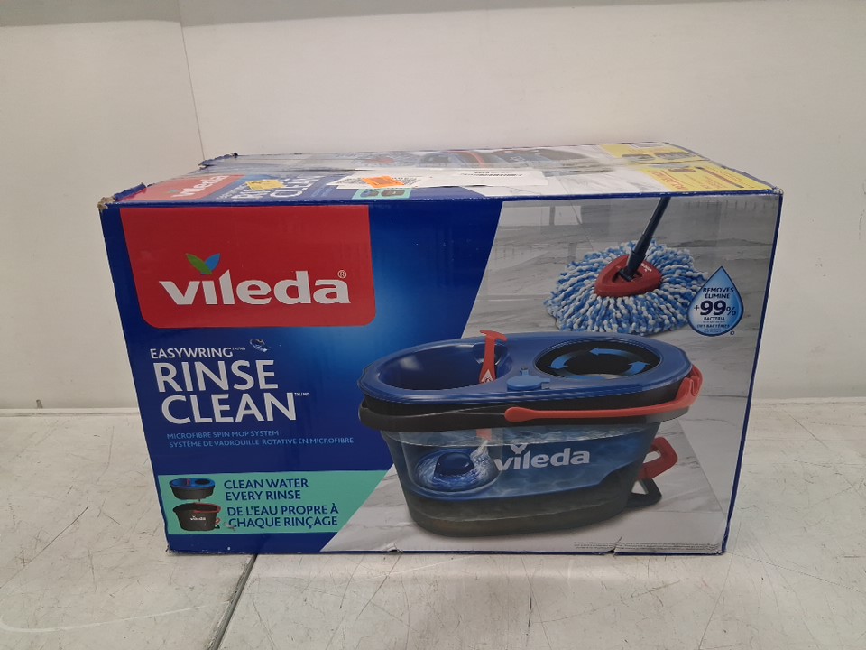 vileda easywring rinseclean spin mop & bucket system with reusable microfibre mophead & extendable handle - blue (model:170144)