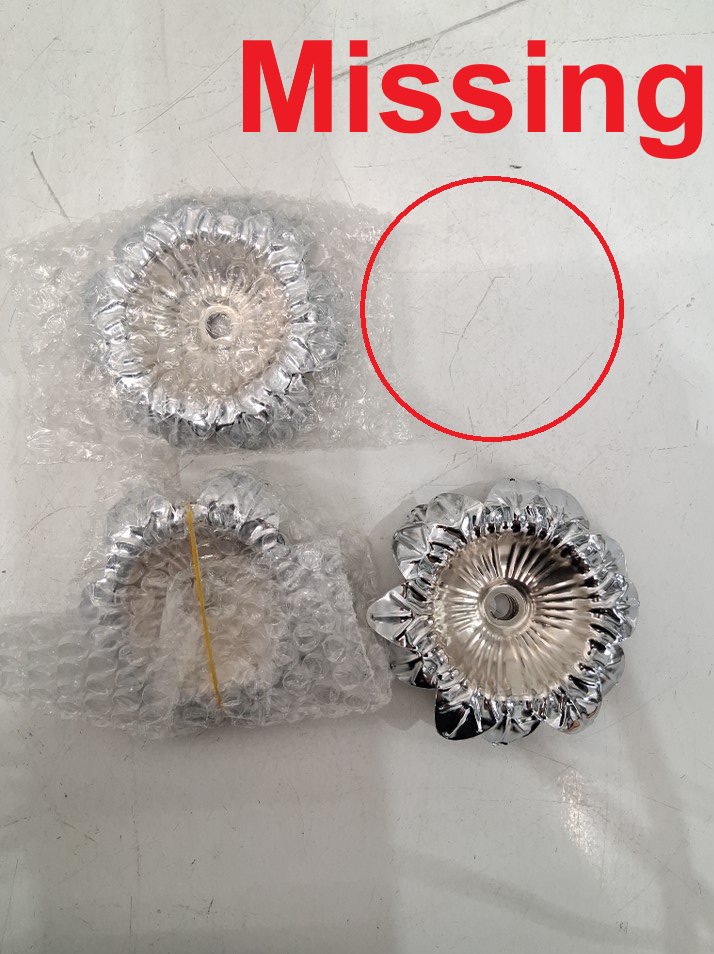 Item appears to be missing 5 accessories for 1 of the candle sticks, see photos.