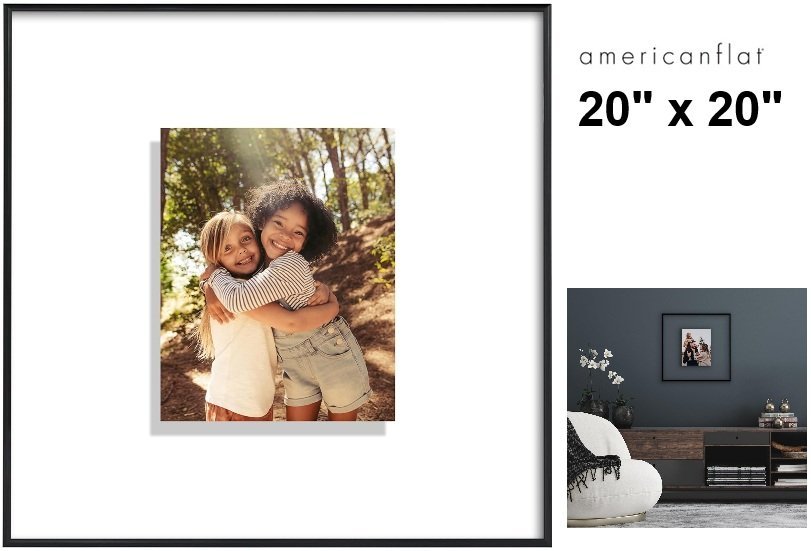 Americanflat Floating Picture Frame with Polished Plexiglass, - 20" x 20" - black