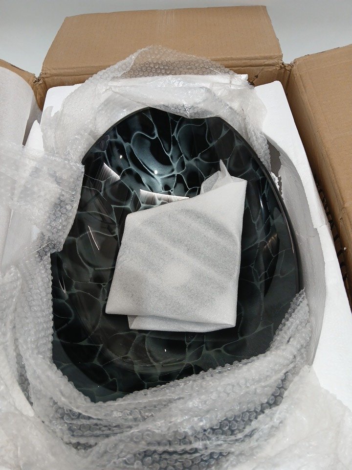 NOVATTO AZZURRO DECORATIVE GLASS OVAL VESSEL BATHROOM SINK - BLACK (MODEL: NOHP-G012/8031)