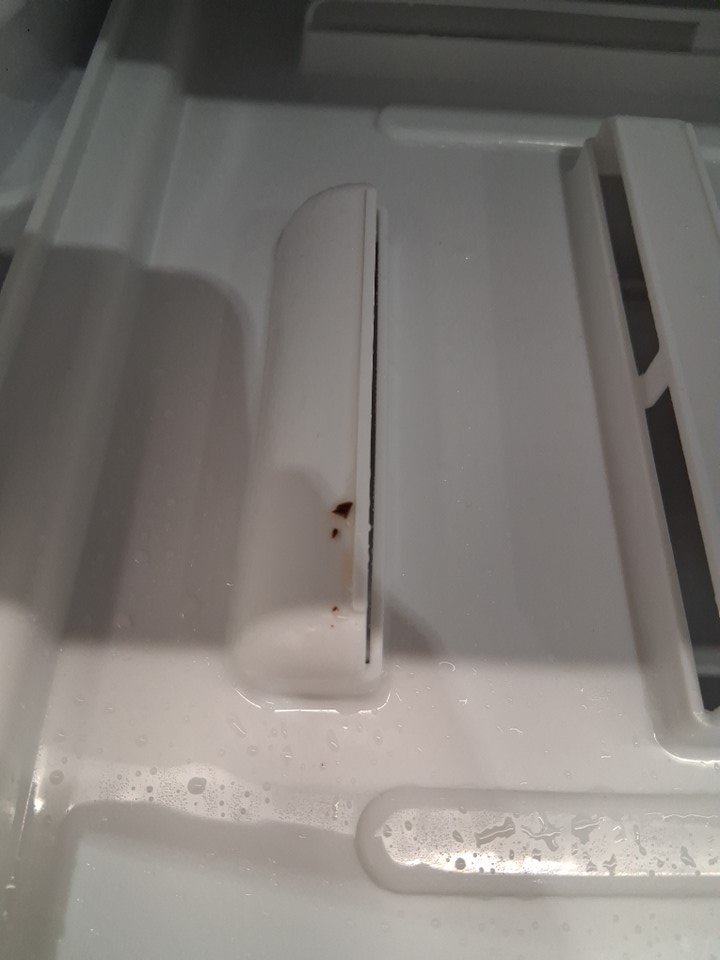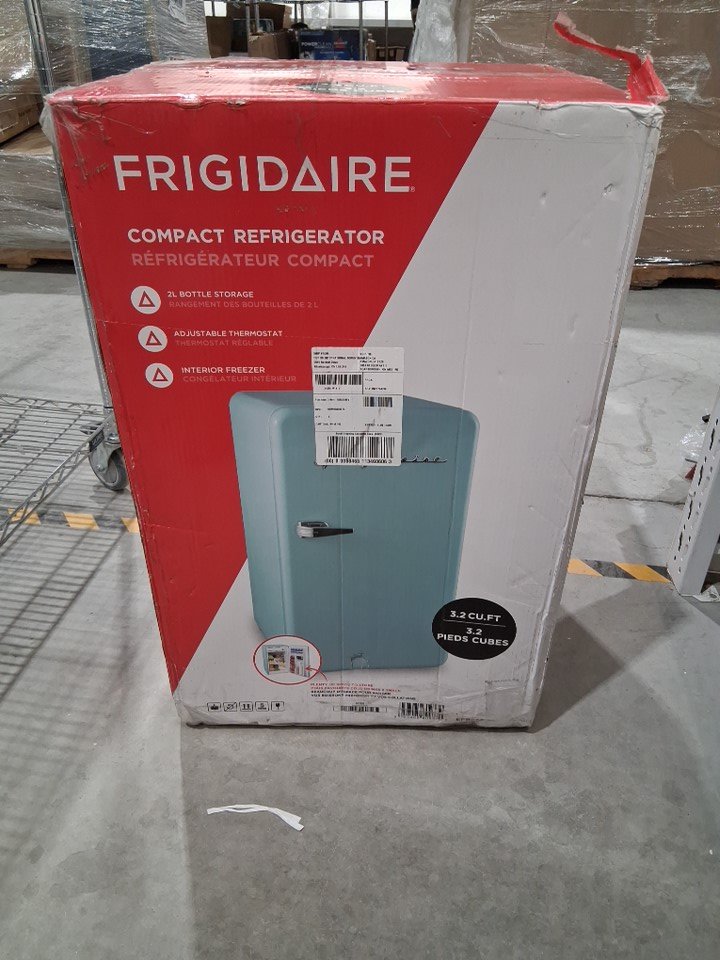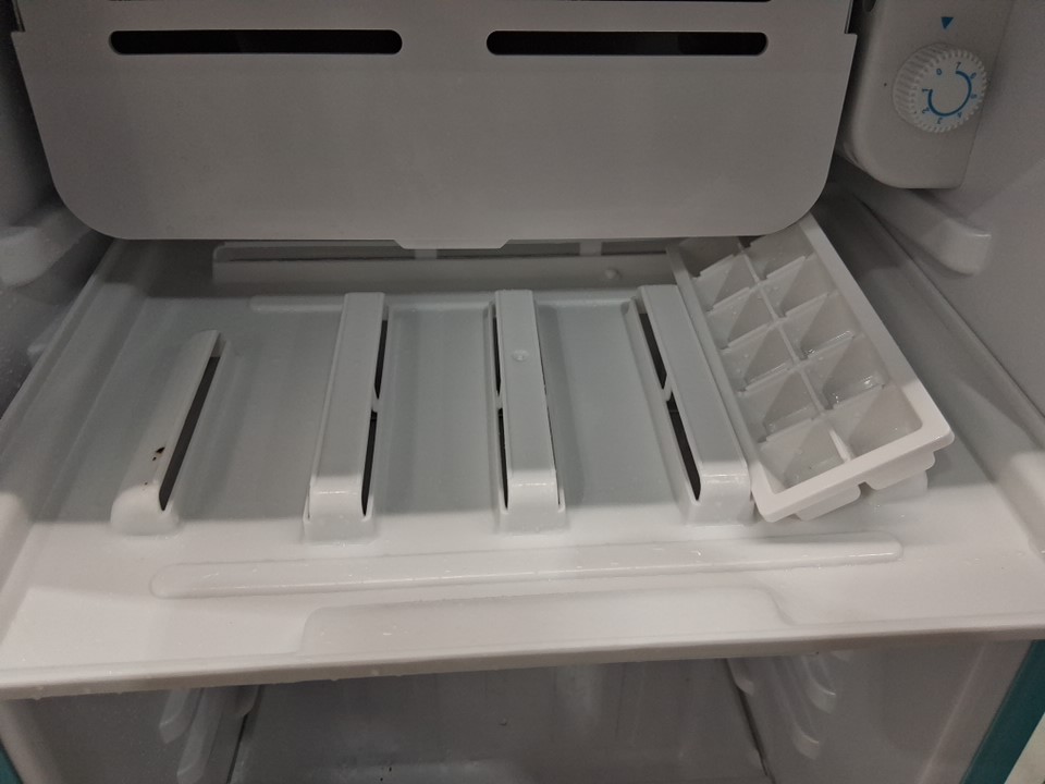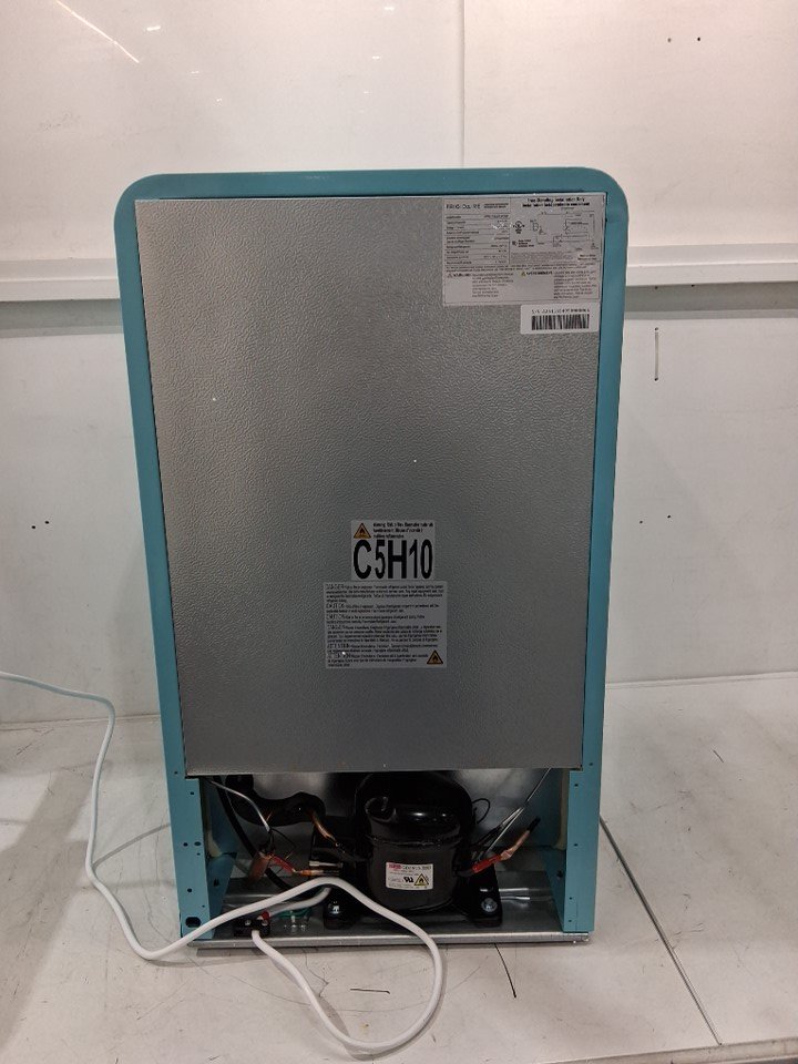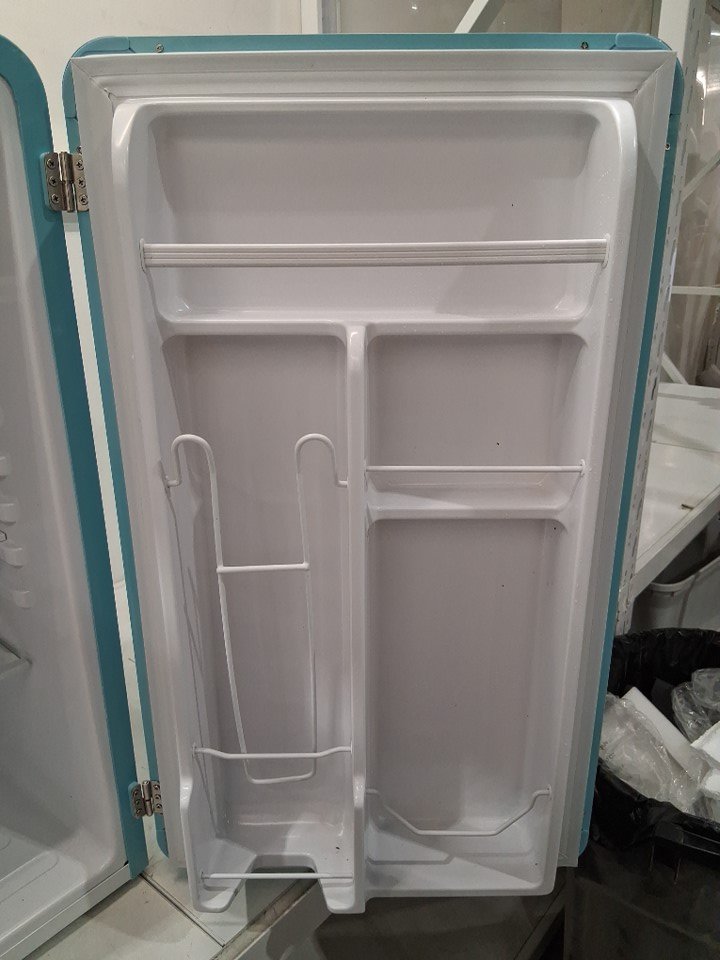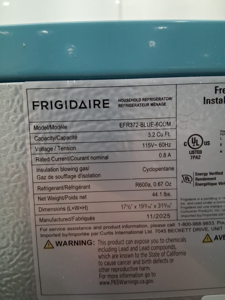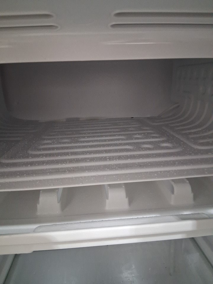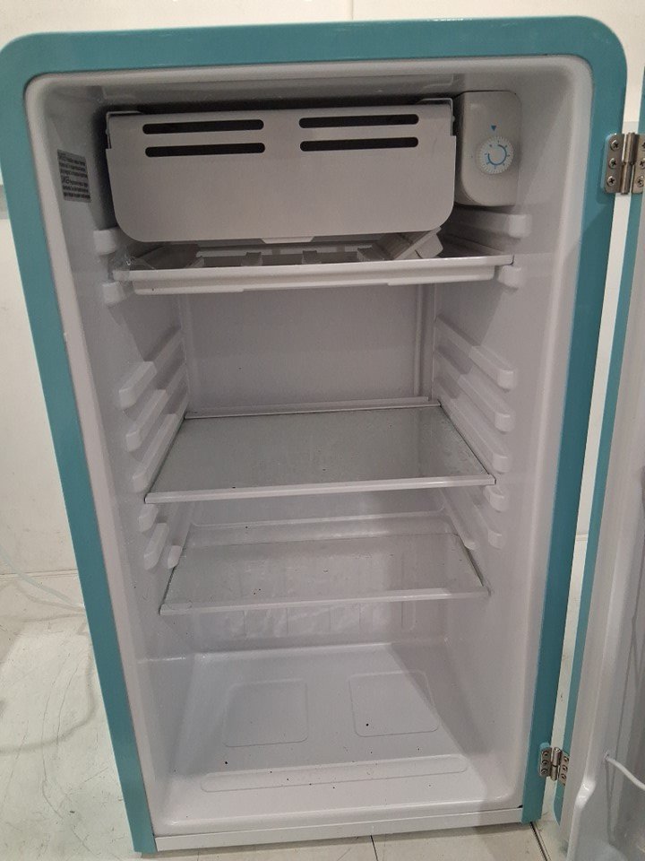 One of the legs of the fridge appears to be missing from the packaging. Additionally, there is some moisture and light dirt on the inside of the fridge indicating some prior use - see photos. Outside of the missing leg and prior use, the fridge appears to be in good condition without any obvious issues or visible damage. Tested for power and cooling.
