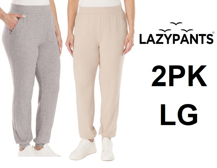 2PK women's lazypants high waist joggers - large - grey / BEIGE (style: 2855073)