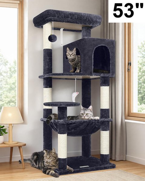 Globlazer Cat Tree Tower for Indoor Cats- 53"-dark grey-(model:f53)
