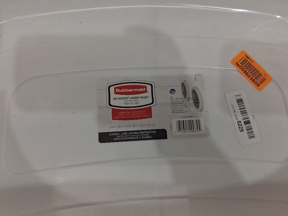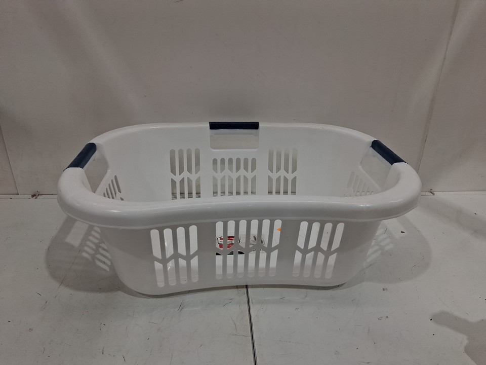 RUBBERMAID HIP HUGGER LAUNDRY BASKET - LARGE (25.9"x18"x9.5") - WHITE/navy (model: fg299787wht)