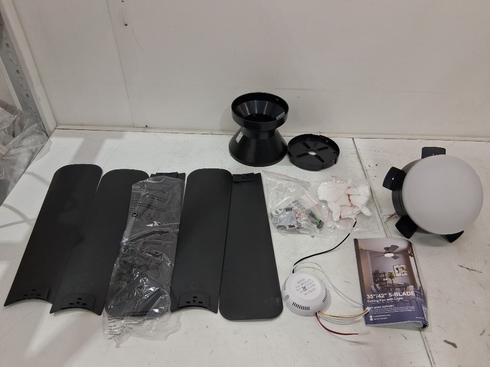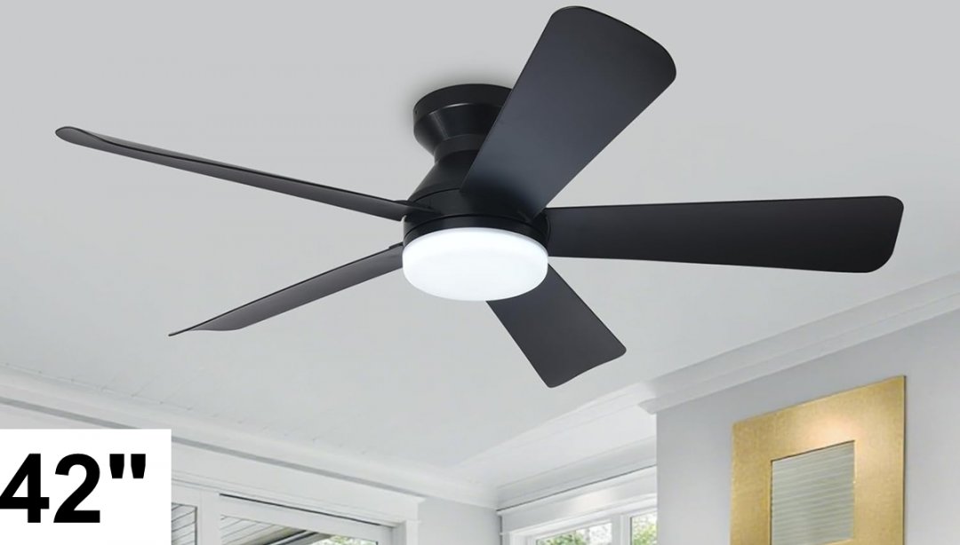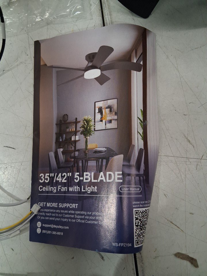 Depuley 5-blade remote control ceiling fan room light - 42" - black + black blades - (Model: ws-fpz194-42c-bk)
