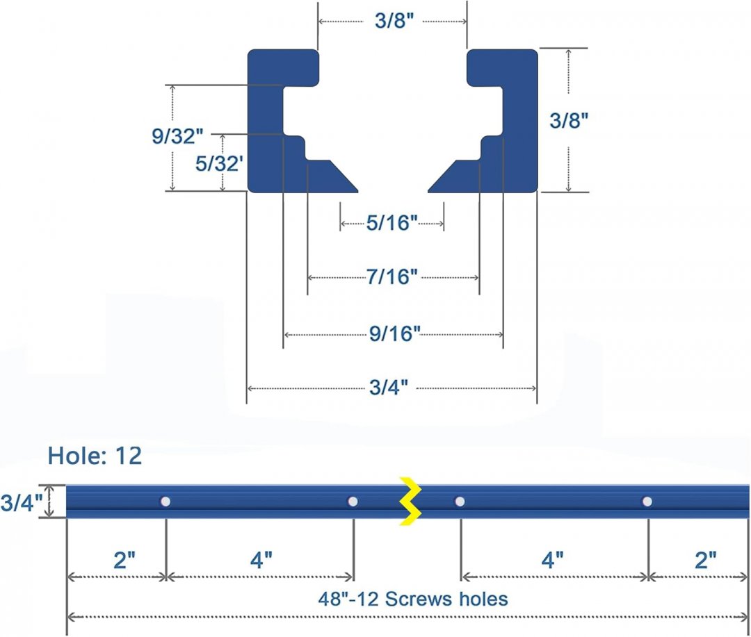2PK Bikykose DOUBLE CUT UNIVERAL T-TRACK - 48'' - BLUE