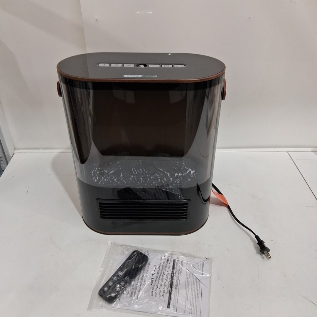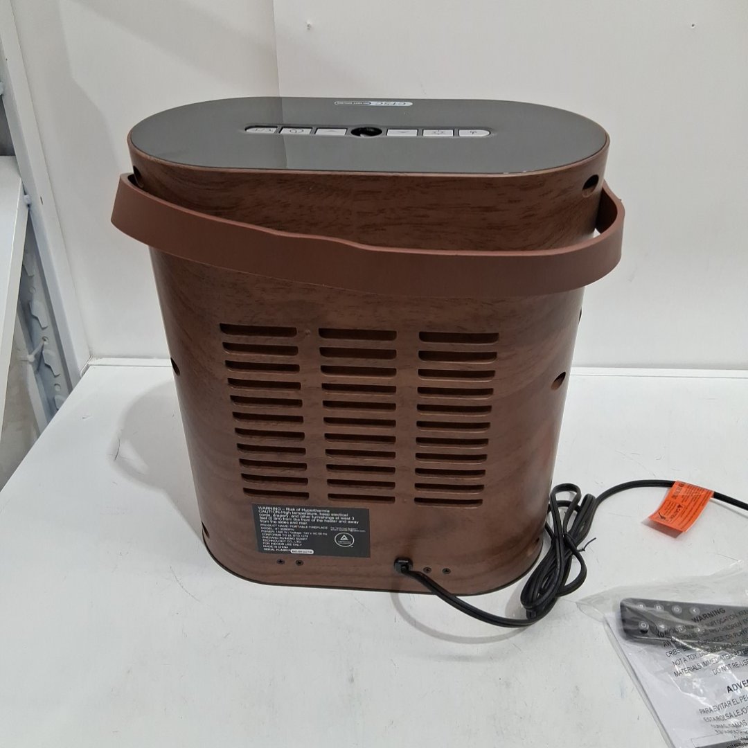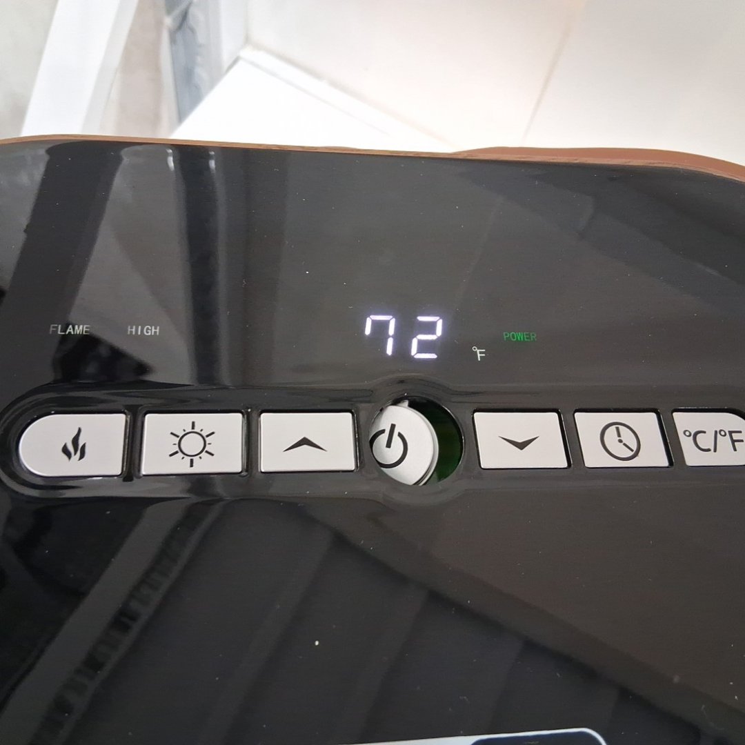 The power button has been partially pushed below the surface. the button is still able to be pushed to power the heater on & off. All buttons work. Tested for power.