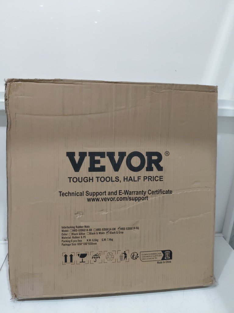 6PK VEVOR Thick Gym Floor Mats with Rubber Top and EVA Foam - 24" X 24" - BLACK/gray (MODEL: hrd-xjd6614-6g)