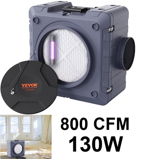 air scrubber with 3 stage hepa filtration - 130 Watts 800 cfm - merv 10 filters - 24" x 23" x 16" - grey (model: zhp2302-800)