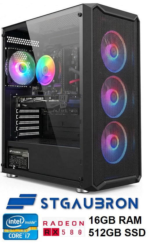 STGAUBRON GAMING COMPUTER - INTEL i7-8850h - 16GB RAM - 512GB SSD - RX580 2048SP - BLACK
