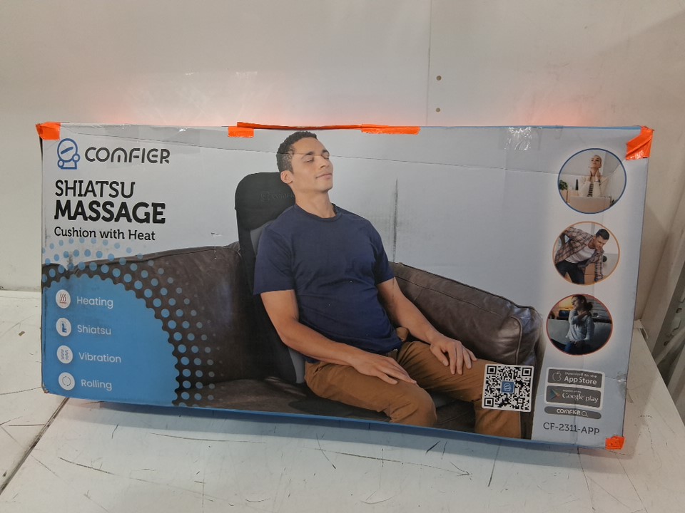 comfier shaitsu msassage cushion with heat for deep tissue kneeding/vibration & APP control - grey/black (model: CF-2311-APP)