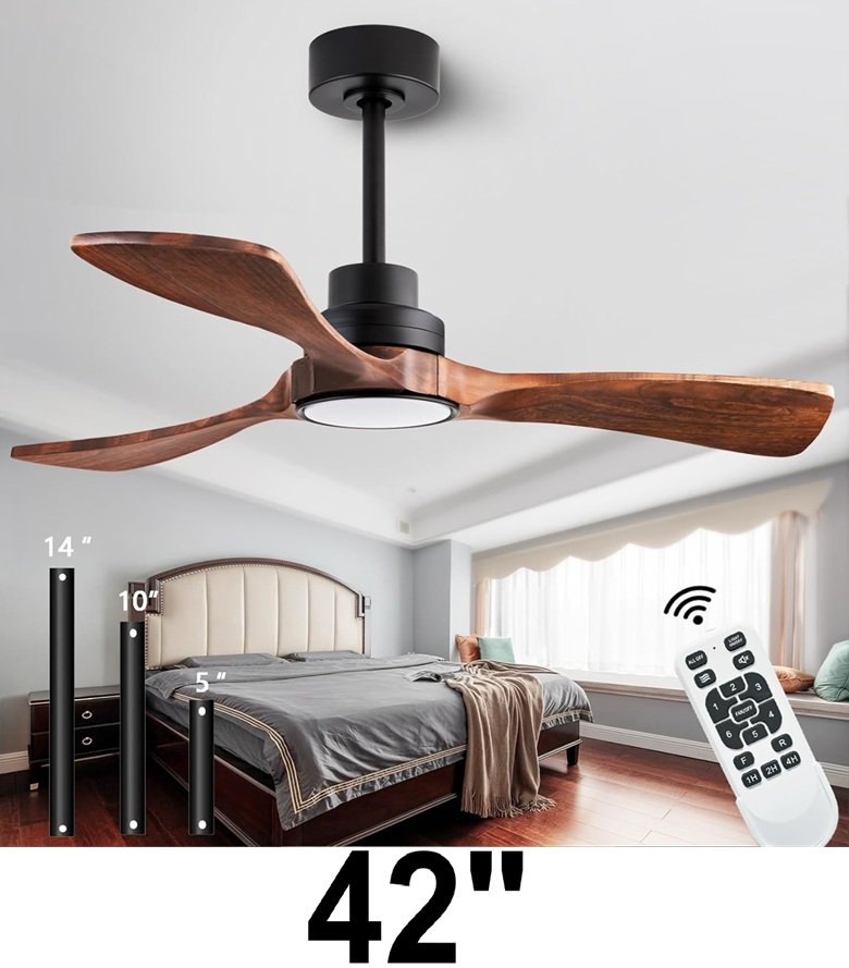dearnow 6-Speed Timer Function 3 Wooden Blade remote Control Ceiling Fan Light - 42" - black/walnut (model: HR-698)