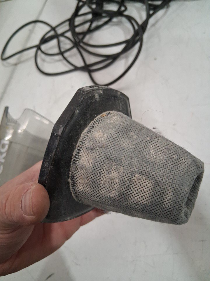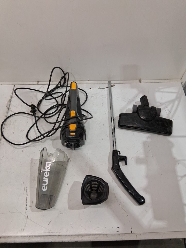 item is missing skinny hose attachment, item also has light signs of use, dust and debris and scuffing in and on vacuum and vacuum filter ( see photos) product was tested for power