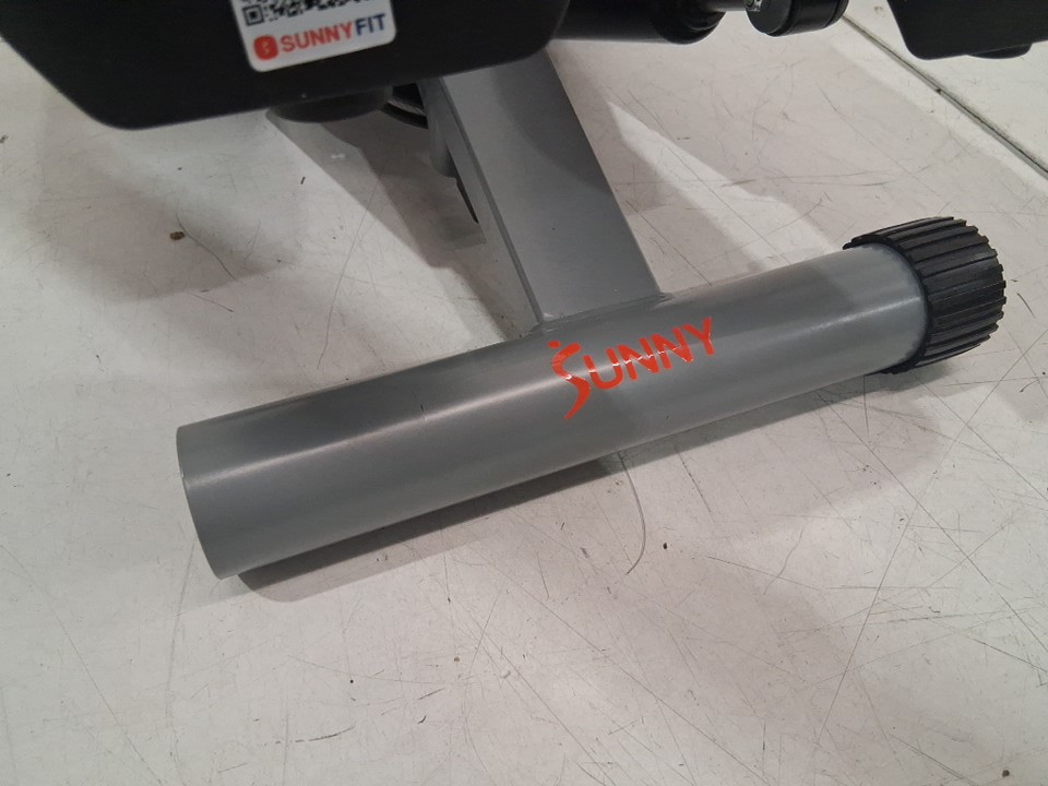 It has some grease residue on the frame & a sticker is stuck to the food pad and it is missing a cap and the exercise bands - see photos
