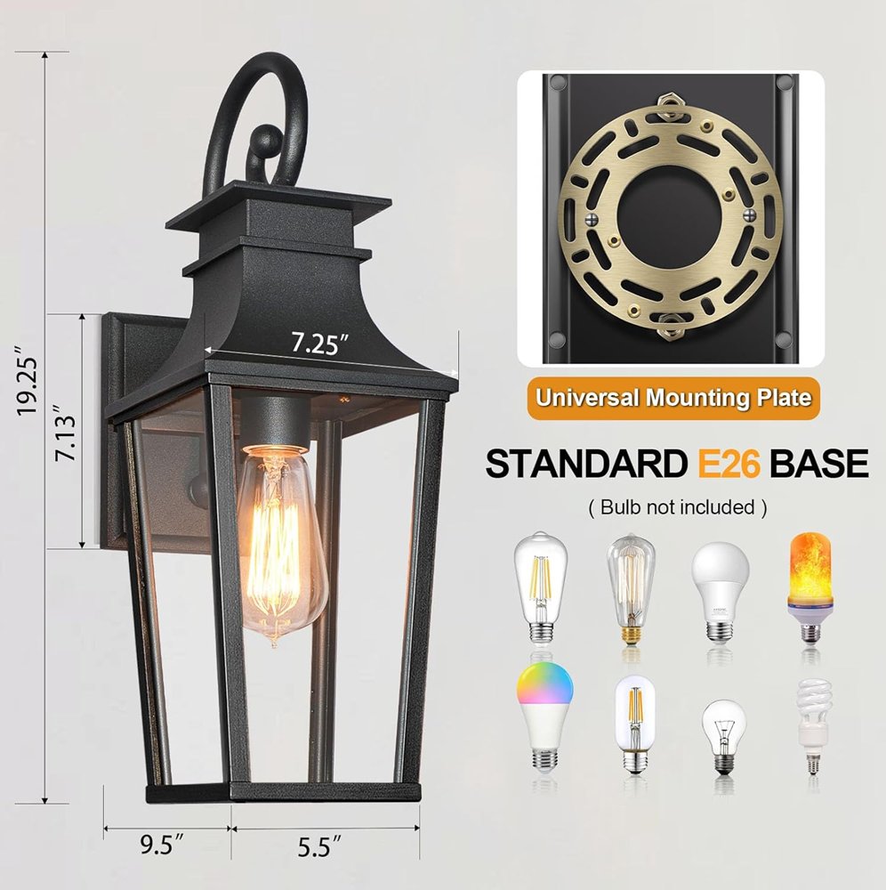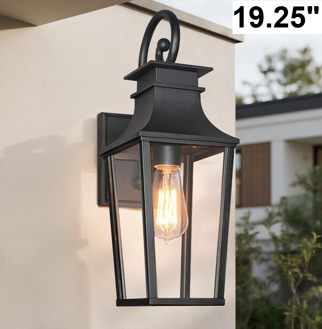 ALVIME lighting WATERPROOF, anti-rust metal Sconce outdoor WALL LIGHT FIXTURE/Exterior - 100W - 19.25" x 7.25" x 5.5" x 9.5" - texture black/clear glass (MODEL: HY90042BK)
