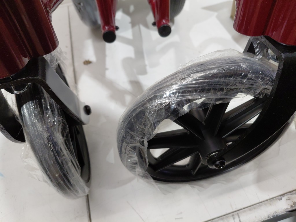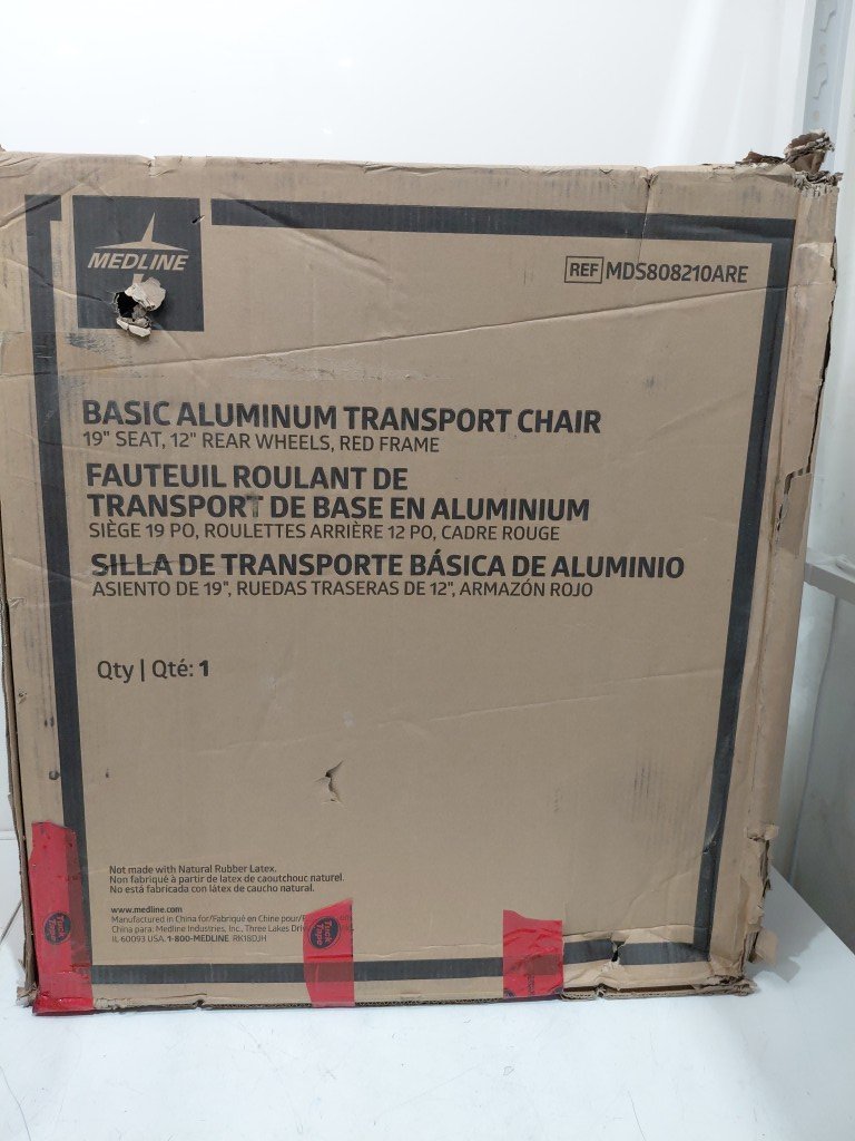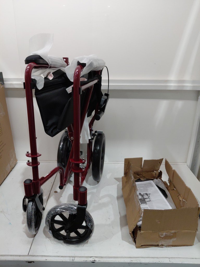 MEDLINE BASIC ALUMINUM TRANSPORT WHEELCHAIR - 19" - 12" REAR WHEELS WITH BRAKES - 300lbs capacity - RED (MODEL: MDS808210ARE)